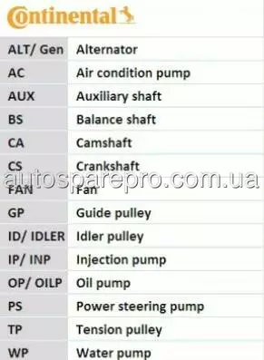 Конструкторські номера для CONTITECH, CT1010