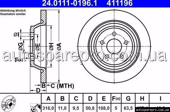 Опис деталі: Гальмівний диск задній ATE 411196 — преміум-запчастина від німецького виробника ATE (Continental Teves). Цілісний дизайн діаметром 316 мм, товщиною 11 мм (мін. 9,5 мм) забезпечує стабільне гальмування без перегріву. Висота 50,8 мм, центрування 63,5 мм, внутрішній діаметр 187,4 мм, 5 отворів PCD 108 мм, отвір 13,8 мм — повна сумісність з OEM, без перфорації. Легована/високовуглецева сталь з цинковим покриттям стійка до корозії, ресурс до 60 тис. км. Сертифікація E1 90R-02C0165/1158 (ECE R90). Аналог Ford DG9Z2C026B/D, BRRF398, G2MZ2V026TA, 2019282, KJ5Z2C026A, GV612A315AA, BRRF120/314, 5338889, KS7C2A315B/A/BB. Виробництво в Німеччині (ISO/TS 16949), ціна на 25-35% нижча оригіналу.