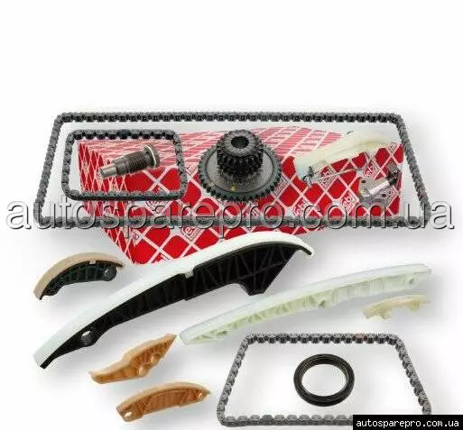 Комплект ланцюга ГРМ Febi 106512 є повним набором для заміни ланцюгового приводу розподільного вала, виробленим німецькою компанією FEBI BILSTEIN. Цей аналог оригінальних запчастин забезпечує точний синхронізм газорозподільного механізму, запобігаючи втратам потужності та пошкодженням двигуна. Включає зубчасті замкнуті ланцюги (170, 96 та 60 ланок), натягувач, шестерню колінвала, напрямні та ущільнення, що робить його ідеальним для комплексного ремонту. Вага комплекту – 2,477 кг, що свідчить про компактність та легкість монтажу. Як заміна оригіналу VAG (06K109158D), він відповідає стандартам якості, але пропонує доступну ціну з високою надійністю для двигунів з ланцюговим приводом.
