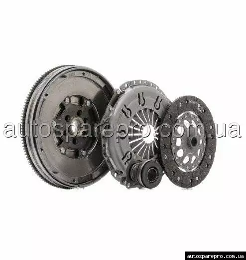 Комплект включає двомасовий маховик, кошик зчеплення, диск зчеплення, вижимний підшипник та комплект болтів. Конструкція забезпечує ефективне гасіння крутильних коливань, зниження вібрацій та шуму трансмісії, а також плавну роботу зчеплення навіть під навантаженням.