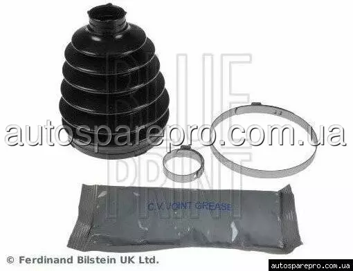 Для забезпечення довговічності трансмісії та захисту шарнірів рівних кутових швидкостей пропонуємо купити комплект зовнішнього пильника ШРУСа від німецького бренду Blue Print, артикул ADC48120. Виробництво Німеччина. Дана деталь виготовлена з високоякісного термопласту — сучасного матеріалу, який значно перевершує звичайну гуму за показниками міцності, стійкості до механічних пошкоджень та впливу низьких температур.