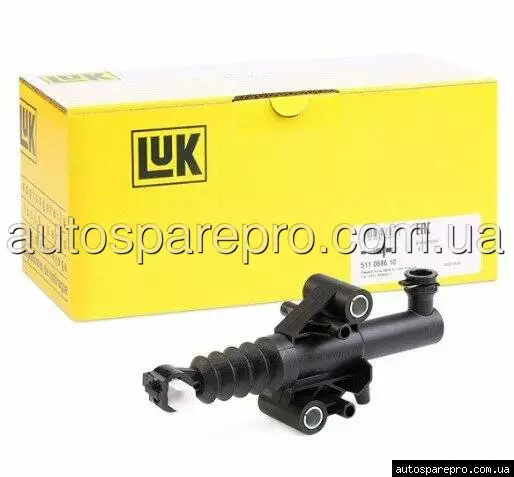 Головний циліндр зчеплення LUK 511068610 (LuK 511 0686 10) призначений для передачі зусилля від педалі водія до робочого циліндра зчеплення в механічній коробці передач. Ця деталь забезпечує точну та надійну роботу гідравлічної системи зчеплення, дозволяючи плавно вмикати та вимикати передачі.
