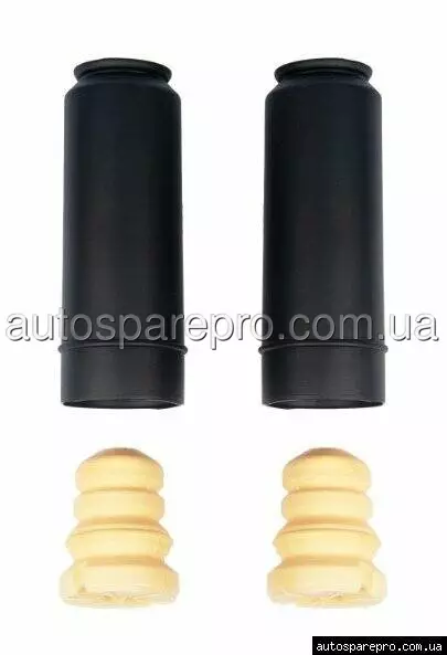 Запчастина відповідає оригінальним номерам BMW: 33533411995, 33506773628, 33536783101, що гарантує точну посадку та сумісність з заводською конструкцією. Виготовлена з еластичного гуму та поліуретану, стійких до озону, УФ та температур від -40°C до +100°C, з товщиною стінки 2-3 мм для довговічності. Комплект включає пильник з герметичним ущільненням для бар'єру від забруднень і відбийник з амортизуючим профілем для обмеження ходу, витримуючи навантаження до 400 кг. Вага комплекту – 0,4 кг, монтаж без спецінструментів (20-30 хв на сторону). Дизайн адаптовано під стандартні штоки 22 мм BMW, з вентиляцією для уникнення конденсату. Сертифікація за ECE R90 забезпечує безпеку для європейських доріг.