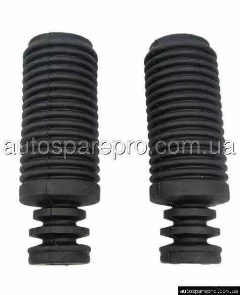 Запчастина відповідає оригінальним номерам Nissan: 5405034U02, 5405031U02, що гарантує точну сумісність з заводськими параметрами. Виготовлена з еластичного гуму та поліуретану, стійких до розтріскування та хімічних впливів, вона витримує температури від -40°C до +100°C і механічні навантаження до 400 кг на пару. Комплект включає пильник з герметичним ущільненням для бар'єру від забруднень і відбийник з амортизуючим профілем для обмеження ходу стиснення, що зменшує ризик деформації пружин. Вага комплекту – близько 0,3 кг, дизайн адаптовано під стандартні штоки 20-22 мм Nissan, з вентиляцією для уникнення конденсату. Сертифікація за ECE R90 забезпечує безпеку для японських моделей з ABS.