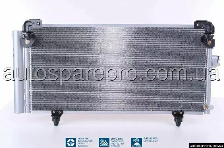 Встановлення та рекомендації: Заміна: злийте фреон, зніміть бампер, відкрутіть хомути, встановіть новий конденсатор з осушителем, заправте систему (R134a: 550 г). Перевірте на витоки. Рекомендується з заміною осушителя кожні 5 років.