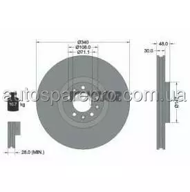 Тормозной диск 340x30мм, 05/08x108, вентилируемый, с покрытием, без ступицы, без колесной крепящей оси (TEXTAR 98200 2560 0 1 PRO)TEXTAR, 92256003, Тормозной диск