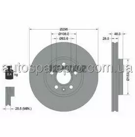 Тормозной диск 296x28мм, 05/06x108, вентилируемый, с покрытием, Высокоуглеродистый, без ступицы, без колесной крепящей оси (TEXTAR 98200 2875 0 1 PRO+)TEXTAR, 92287505, Тормозной диск