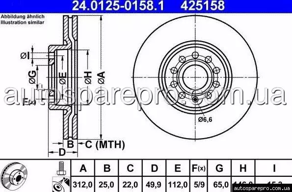 Тормозний диск ATE 24.0125-0158.1 для Audi, Seat, Skoda, VW